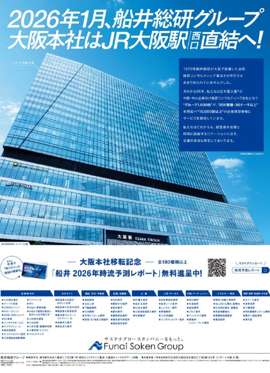 日本最大級の物流コンサルティングファーム 船井総研ロジ株式会社(本社:東京都中央区、代表:橋本直行、以下「船井総研ロジ」)は、2026年1月15日(木)に「中小運送会社の成長戦略と経営キーワード」をテーマにしたセミナーを船井総研グループ 大阪本社(イノゲート大阪)にて開催します。
