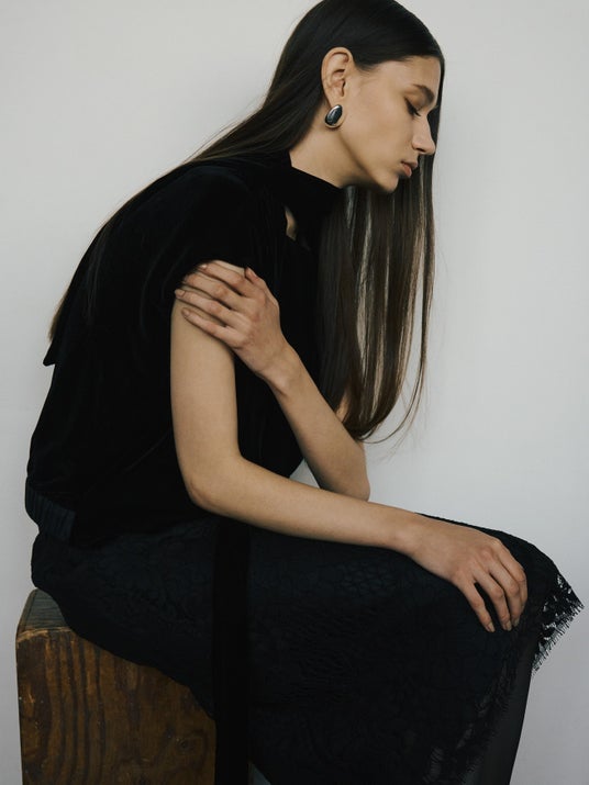 ンがモダンな雰囲気のハンティングジャケット、上品な光沢が魅力のベルベットで仕立てたボウブラウスなど、メンズライクなテイストを軸に繊細な素材やエレガントなアイテムとのテイストミックスしたコレクションがラインナップします。