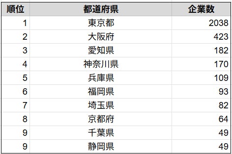 株式会社SalesNow(本社:東京都渋谷区、代表取締役:村岡功規、以下「当社」)は、国内540万社の企業情報を完全網羅した日本最大級のデータベース「SalesNow DB」より、上場企業の都道府県別分布を集計しました。