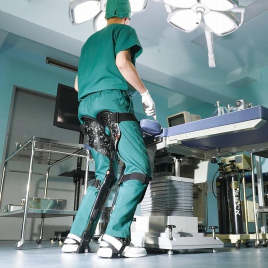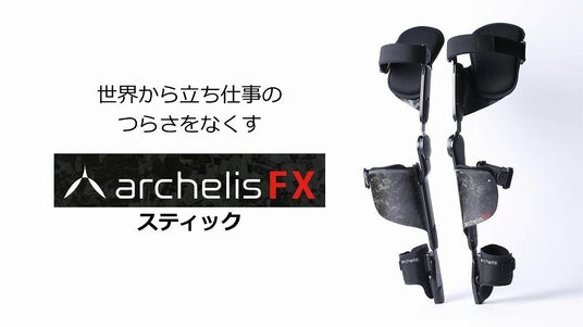 足に装着し、装着者の体重をスネとモモで分散して支えることで、長時間の立ち仕事を楽にするアシストスーツ。