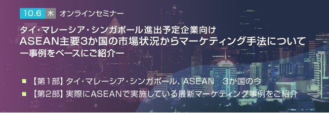 トランスコスモス株式会社(代表取締役共同社長:石見浩一、牟田正明)は、オンラインセミナー【タイ・マレーシア・シンガポール進出予定企業向け】ASEAN主要3か国の市場状況からマーケティング手法についてを10月6日(木)に開催します。
