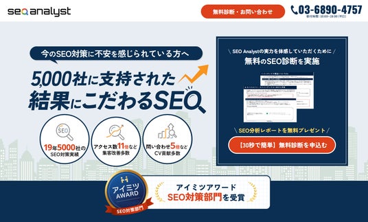 2005年にSEO事業を開始し、計5,000社以上のSEOコンサルティング実績を持つSEOの専門会社。