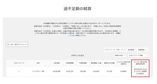 ・過不足額の精算画面に『ジョブカン給与計算』への最終反映日時を表示