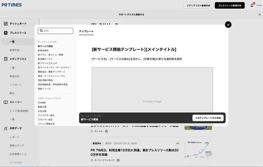 今年8月には、プレスリリース入稿(作成)画面上で、46種の発表目的に合わせたテンプレートを選択できる