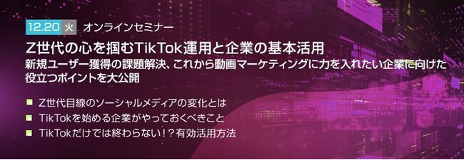 トランスコスモス株式会社(代表取締役共同社長:石見浩一、牟田正明)は、オンラインセミナーZ世代の心を掴むTikTok運用と企業の基本活用を12月20日(火)に開催します。