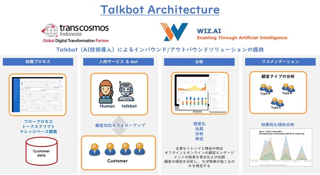 「トランスコスモスとの協業を非常にうれしく思っています。WIZ.AIのTalkbotsはASEAN市場向けに開発、最適化されています。企業が人間らしいCXの提供を自動化し、また、より高い業績を達成することを可能にするこのソリューションで、インドネシア市場のより多くのお客様企業を支援することを楽しみにしています。」
