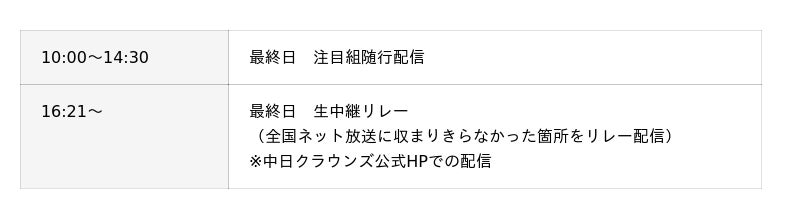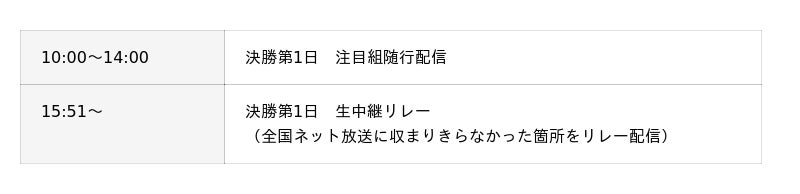 ・両日共通 地上波同時配信(13:55~16:50):