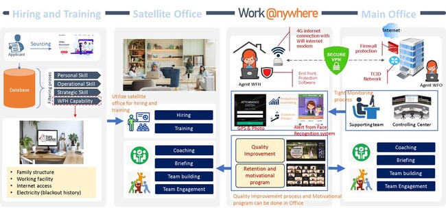 トランスコスモス株式会社(代表取締役共同社長:石見浩一、牟田正明)は、インドネシア市場向けサービスにおいて、在宅勤務運用ソリューション「Work @nywhere」(ワークエニウェア)を開発し、提供を開始しました。在宅でのサービス提供において、セキュリティ・環境・品質管理・運用管理・人材管理などの観点から最適な在宅勤務を実現します。また、ジャカルタやニアショアのオフィスとサテライトオフィスと在宅を組み合わせ、従業員に多様な働き方を提供することで、今後の成長に必要な専門人材の確保を実現するとともに、お客様企業にとってフレキシブルで高品質なオペレーションとコストメリットのあるサービスを提供します。