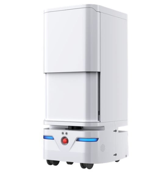 配送ロボット”GOGO"自立配送型のロボットです。GOGOも自動でエレベーターに乗降りすることができ、目的地に到着すれば、自動で内線を鳴らすことも出来ます。病院での導入実績もあり、ロボット自身の走行性や安定性は問題ないことを確認頂いております。