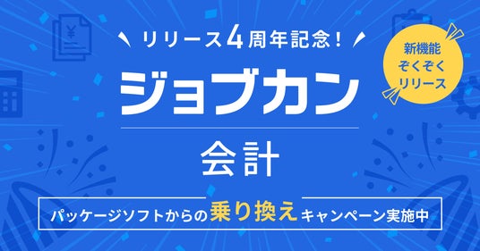 『ジョブカン会計』は、法・制度改正や社会の変化に対応し、日々の記帳業務、顧問税理士とのやり取りのDX推進を目指して、2021年8月にリリースいたしました。バックオフィス業務を少人数で担う中小企業を中心に、多くの企業に導入いただいています。このたび、『ジョブカン会計』4周年を記念して、新規ご契約いただいた方を対象に「乗り換えキャンペーン」を実施いたします。