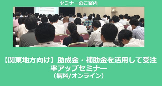 2024/11/20(水)より、「【関東地方向け】助成金・補助金を活用して受注率アップセミナー」を配信開始します!
