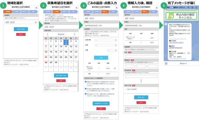 【登米市LINE公式アカウントにおける粗大ごみ収集申込手順のイメージ】
