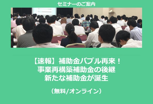 2024/12/9(月)より、「【速報】補助金バブル再来!事業再構築補助金の後継 新たな補助金が誕生」セミナーを配信開始します!