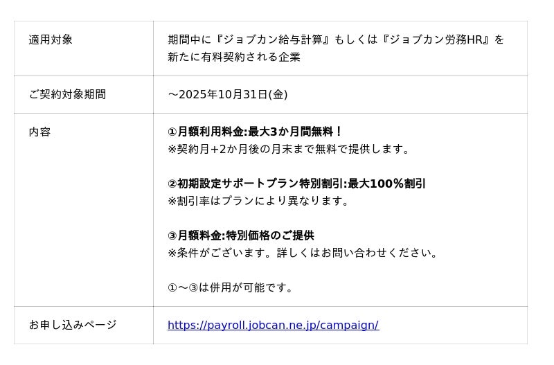 「ジョブカン」では、導入時の初期設定の負担や導入後のコスト負担を大幅に削減し、年末調整業務のDXを後押しする「年末調整クラウド化キャンペーン」を実施しております。
