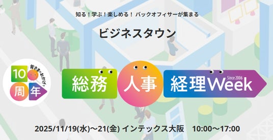 RX Japan株式会社(本社:東京都中央区、代表取締役社長:田中岳志)は「[関西]総務・人事・経理Week」を2025年11月19日(水)~21日(金)の3日間、インテックス大阪で開催します。