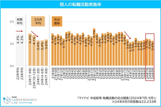 また、2024年9月の個人の転職活動実施率は3.4%だった。