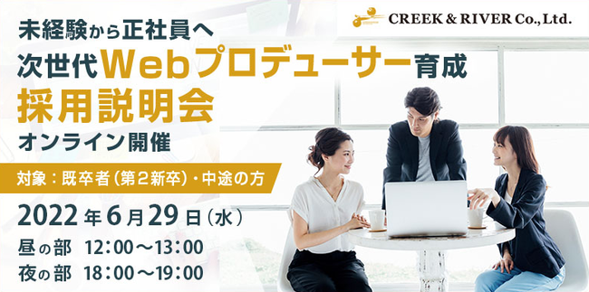 クリーク・アンド・リバー社(C&R社)は6月29日(水)、Webプロデューサーをめざす既卒(第二新卒)や中途の方々を対象に、「次世代Webプロデューサー人材育成プロジェクト」の採用説明会を開催いたします。