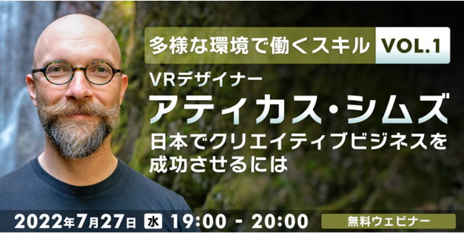 株式会社クリーク・アンド・リバー社(C&R社)は7月27日(水)、グローバルに活躍したいクリエイターやビジネスパーソンの方々を対象に、無料のオンラインセミナー「多様な環境で働くスキルVOL.1 VRデザイナー アティカス・シムズ ~日本でクリエイティブビジネスを成功させるには~」を開催いたします。