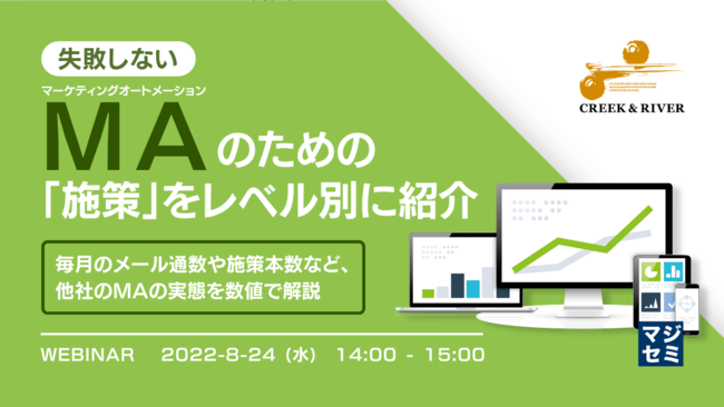 株式会社クリーク・アンド・リバー社は8月24日(水)、マーケティングオートメーション(MA)ツールを導入した企業のご担当者を対象に、無料のオンラインセミナー「失敗しないMAのための“施策”をレベル別に紹介」を開催いたします。