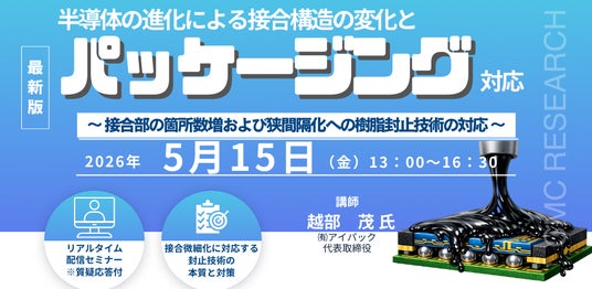 半導体の進化による接合構造の変化とパッケージング対応~ 接合部の箇所数増および狭間隔化への樹脂封止技術の対応 ~開催日時:2026年5月15日(金)13:00~16:30