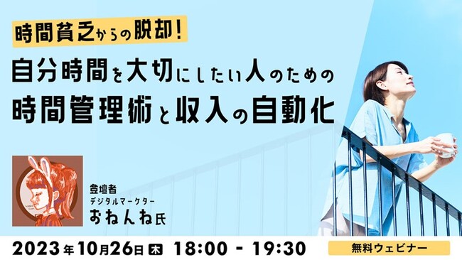 【クリエイター向け】効率的な稼ぎ方と時間管理術を学んで“時間貧乏”から脱却!10/26(木)無料セミナー「“自分時間”を大切にしたい人のための時間管理術と収入の自動化」