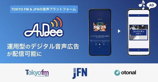 「AuDee」は、TOKYO FMとJFN38局の配信番組1,000コンテンツが集約された音声プラットフォームです。月間ユニークユーザー数は約230万MAUを誇り、若年層を中心に利用されています。このたび、「AuDee」へのアドサーバーおよびSSP導入を行い、同サービスで配信されている番組の音声広告枠への、デジタル音声広告買い付けが可能になりました。純広告からの買い付けと、広告買い付けシステムである各種DSP(Demand-Side Platform)から、ターゲティングやデータ連携による効果検証を実現する広告買い付けが可能となります。