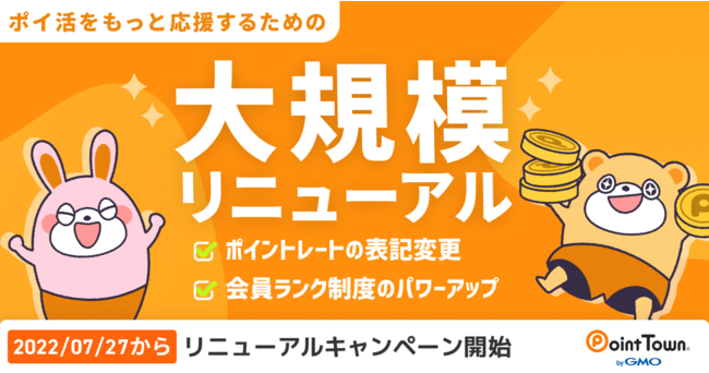 GMOインターネットグループのGMOメディア株式会社(代表取締役社長:森 輝幸 以下、GMOメディア)のポイ活サービス「ポイントタウン byGMO」は、2022年7月27日(水)に大規模なリニューアルを実施いたしました。