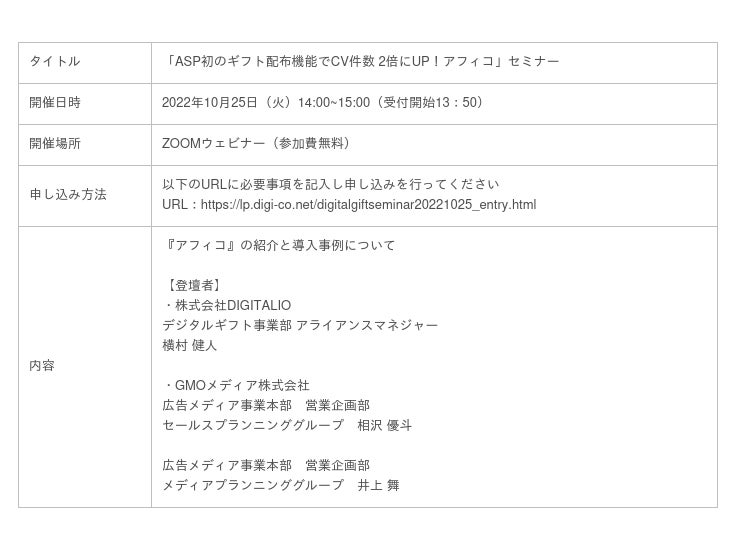 【「ASP初のギフト配布機能でCV件数 2倍にUP!アフィコ」セミナーを開催】