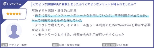 https://www.itreview.jp/ )でのユーザーレビュー数が120件を突破し、満足度4.3(5段階評価)という高い評価を得ています。(2024年10月20日時点)