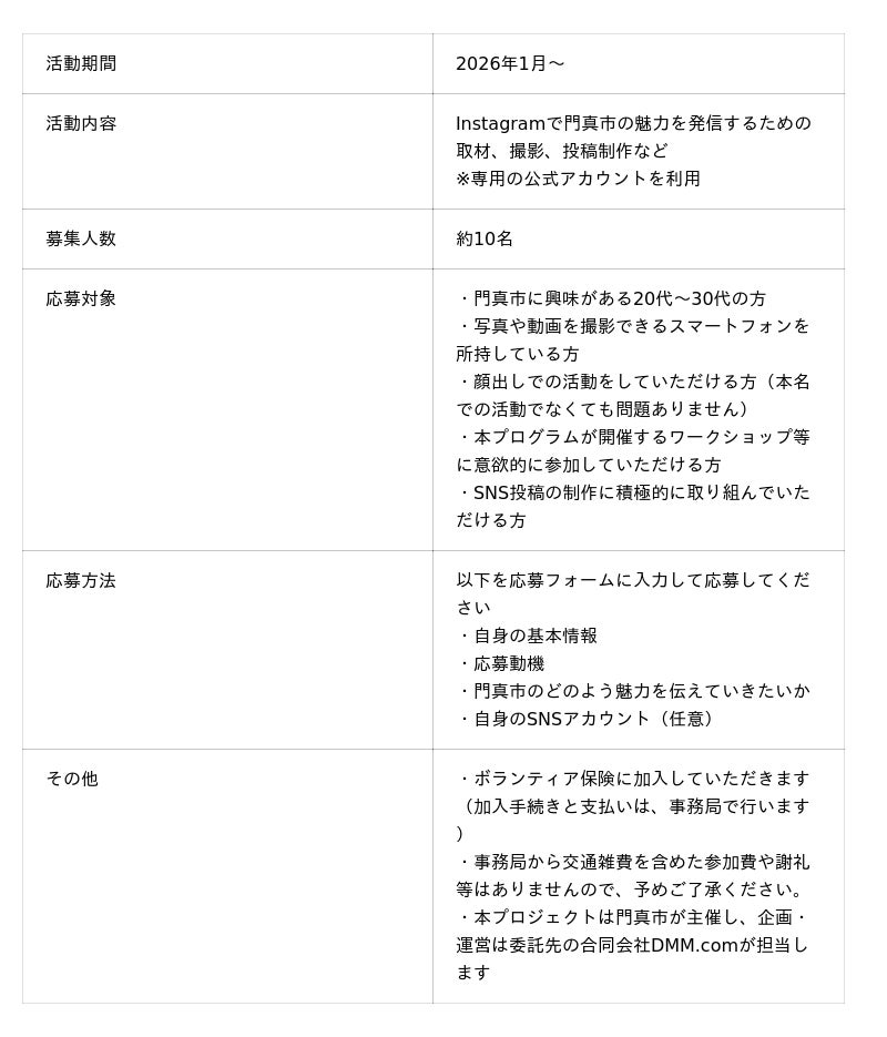 合同会社DMM.com(本社:東京都港区、イノベーションカンパニーCEO:緒方悠、以下DMM)は、地方創生事業(DMM 地方創生)において、大阪府門真市の「シティプロモーション推進事業」の一環として、門真市の魅力を発信する「魅力発信チーム」のメンバー募集を、2025年10月30日より開始いたします。