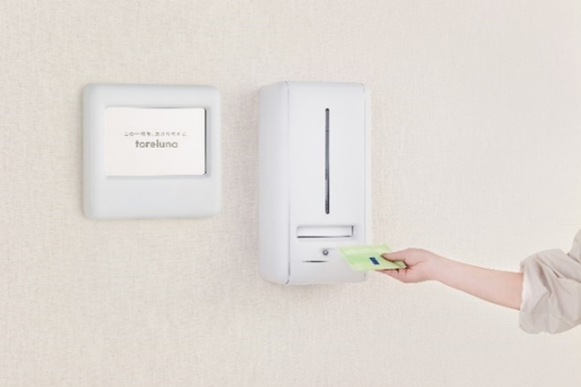 女性社員が急な生理などで不安感や不快感を抱えることなく働ける環境を整えるため、株式会社ネクイノ(以下、ネクイノ)が提供する「トレルナ」を導入しました。「トレルナ」は、女性トイレの個室に設置されたディスペンサーとスマートフォンアプリと連動させることで、必要な時に無料でナプキンを受け取ることができるサービスです。