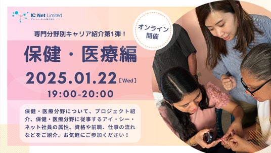 株式会社 学研ホールディングス(東京・品川/代表取締役社長:宮原博昭)のグループ会社、アイ・シー・ネット株式会社(埼玉・さいたま/代表取締役:百田顕児、以下、アイ・シー・ネット)は、2025年1月22日(水)および1月29日(水)に、就職や転職を検討されている方、情報収集をされたい方向けに2週連続でオンラインイベントを開催いたします。