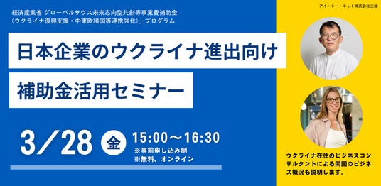 株式会社 学研ホールディングス(東京・品川/代表取締役社長:宮原博昭)のグループ会社、アイ・シー・ネット株式会社(埼玉・さいたま/代表取締役:百田顕児、以下アイ・シー・ネット)は、ウクライナへの事業進出に関心のある企業を対象に、経済産業省の補助金活用に関するオンラインセミナーを開催します。