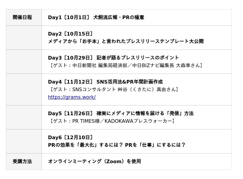 株式会社KADOKAWA(本社:東京都千代田区、取締役 代表執行役社長 CEO:夏野剛)は、ライフシフト事業「brand new ME!」主催にて、PRの力で事業を拡大したい経営者や広報担当者、個人事業主向けオンライン講座『社会から信頼され応援されてビジネスがさらに加速する 犬飼流広報・PR集中講座』第5期を2025年10月1日(水)よりスタートいたします。