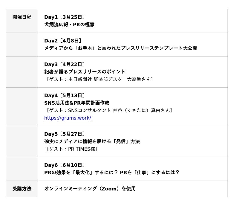 【早期お申し込み特典】(1)2026年2月23日(月)までにお申し込みいただいた先着30名犬飼さんによるグループコンサルティングに参加できます。※1回2~4名、30分程度。本講座の前後で日程を調整し、PRに関することを何でも相談できます。