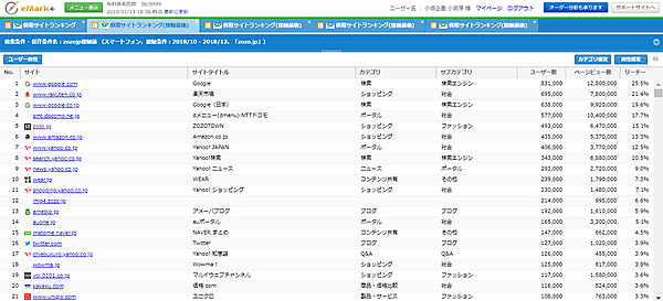 「併用サイトランキング(接触前後)」で、「前」に見ているサイトを調べました。