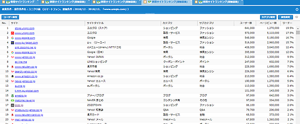 では、21位に出ていたユニクロの併用サイトはどの辺なんでしょうか?