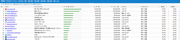 このようにカテゴリ単位でユーザー数が多いウェブサイトを並べることができます。上記は3月の数字です。
