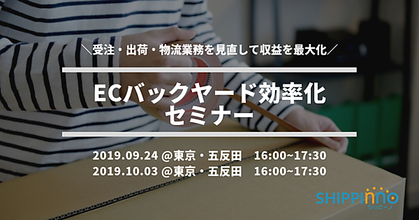 EC自動出荷システムを提供するシッピーノ株式会社では、受注・出荷・物流業務を見直して収益を最大化するための 「 ECバックヤード効率化セミナー 」について紹介するセミナーを2019年9月24日(火)、10月3日(木)に開催いたします。