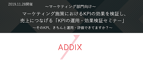 株式会社ADDIX(所在地:東京都千代田区、代表取締役:酒井大輔 以下、ADDIX)は、企業のマーケティング部門の管理者・担当者を対象とした「KPIの運用・効果検証セミナー」を、2019年11月28日(木)に開催いたします。