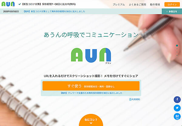 無料版AUN(アウン)の保存期間を、従来の7日より30日間へ拡大する事にいたしました。