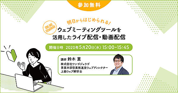 | タイトル | 明日からはじめられる!ウェブミーティングツールを活用したライブ配信・動画配信 |