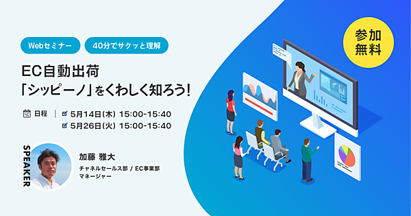 EC出荷の自動化ツールを提供するシッピーノ株式会社は、40分のWebセミナー(ウェビナー)を5/14(木)に開催します。