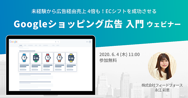 株式会社フィードフォースが提供する、マーケターのためのデータフィード管理ツール「dfplus.io」は、企業のECシフトを支援するため、Googleショッピング広告入門ウェビナーを2020年6月4日(木)に開催いたします。