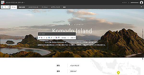 通常のCMSでは、管理画面でコンテンツを編集した後にプレビューから編集内容の確認を行いますが、エクスペリエンスエディターを使用することで、あたかも実際のページ上でコンテンツを編集しているかのように編集することが可能です。
