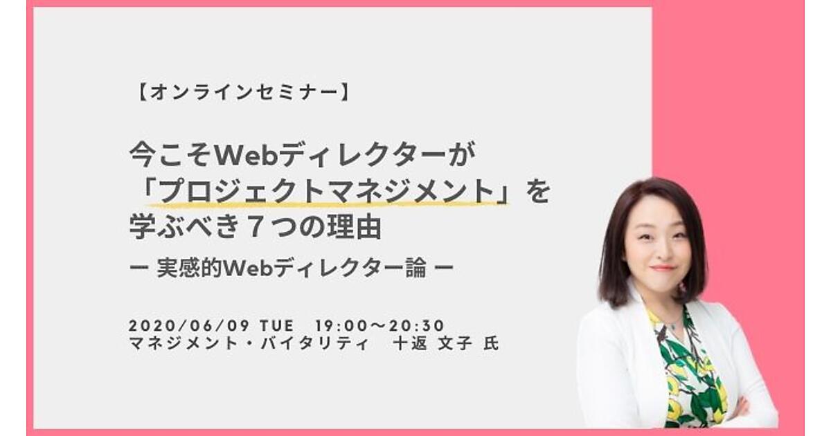 本セミナーでは、十返さんからご自身の経験に最新の理論を交えて、Webディレクターがプロジェクトマネジメントを学ぶことによるメリットや展望についてお話しいただきます。