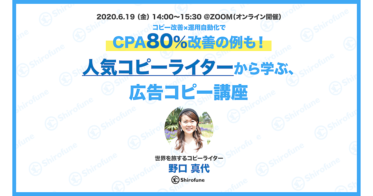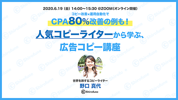 広告のコピーに悩まれている方や、Shirofuneなどのツールを活用しつつも、さらに効果を高くしたいと思う方などは、是非このウェビナーにご参加いただき、今後の運用に向けた何かしらのきっかけと掴んで頂ければと思います。