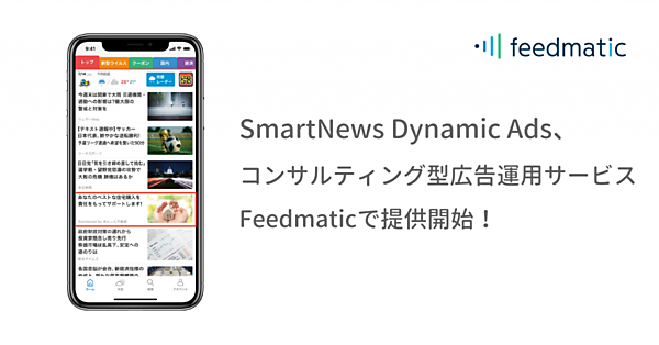2020年7月20日、株式会社フィードフォース(所在地:東京都文京区、代表取締役:塚田 耕司、以下「フィードフォース」)が提供するコンサルティング型広告運用サービス「Feedmatic」は、スマートニュース株式会社(所在地:東京都渋谷区、代表取締役会長兼社長 CEO:鈴木 健、以下「スマートニュース」)が運営するニュースアプリSmartNewsにてダイナミック広告が配信できるSmartNews Dynamic Adsの取り扱いを開始いたしました。