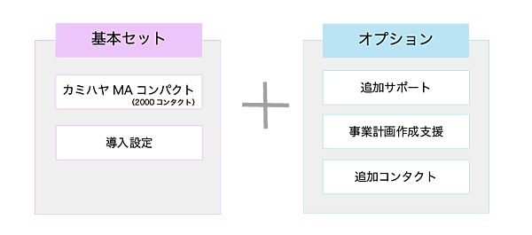 「カミハヤMAコンパクト」には導入に際しての基本設定がついておりますが、「追加サポート」をオプションとして追加することで、「カミハヤMAコンパクト」を用いたマーケティング事業を支援するサービスです。