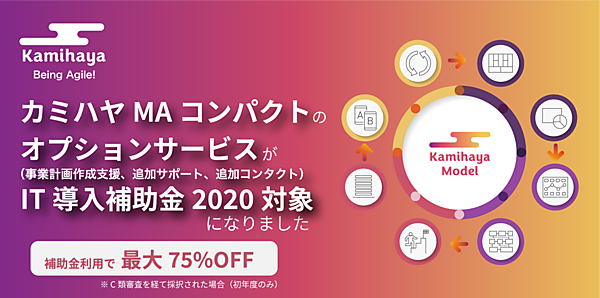 ジェネロ株式会社(本社:東京都大田区 代表取締役:竹内大志 以下ジェネロ)が展開するマーケティングオートメーションツール『カミハヤMAコンパクト』のオプションサービス『事業計画作成支援』『追加サポート』『追加コンタクト』が、経済産業省が推進するサービス等生産性向上IT導入支援事業「IT導入補助金2020」の対象ツールに認定されました。